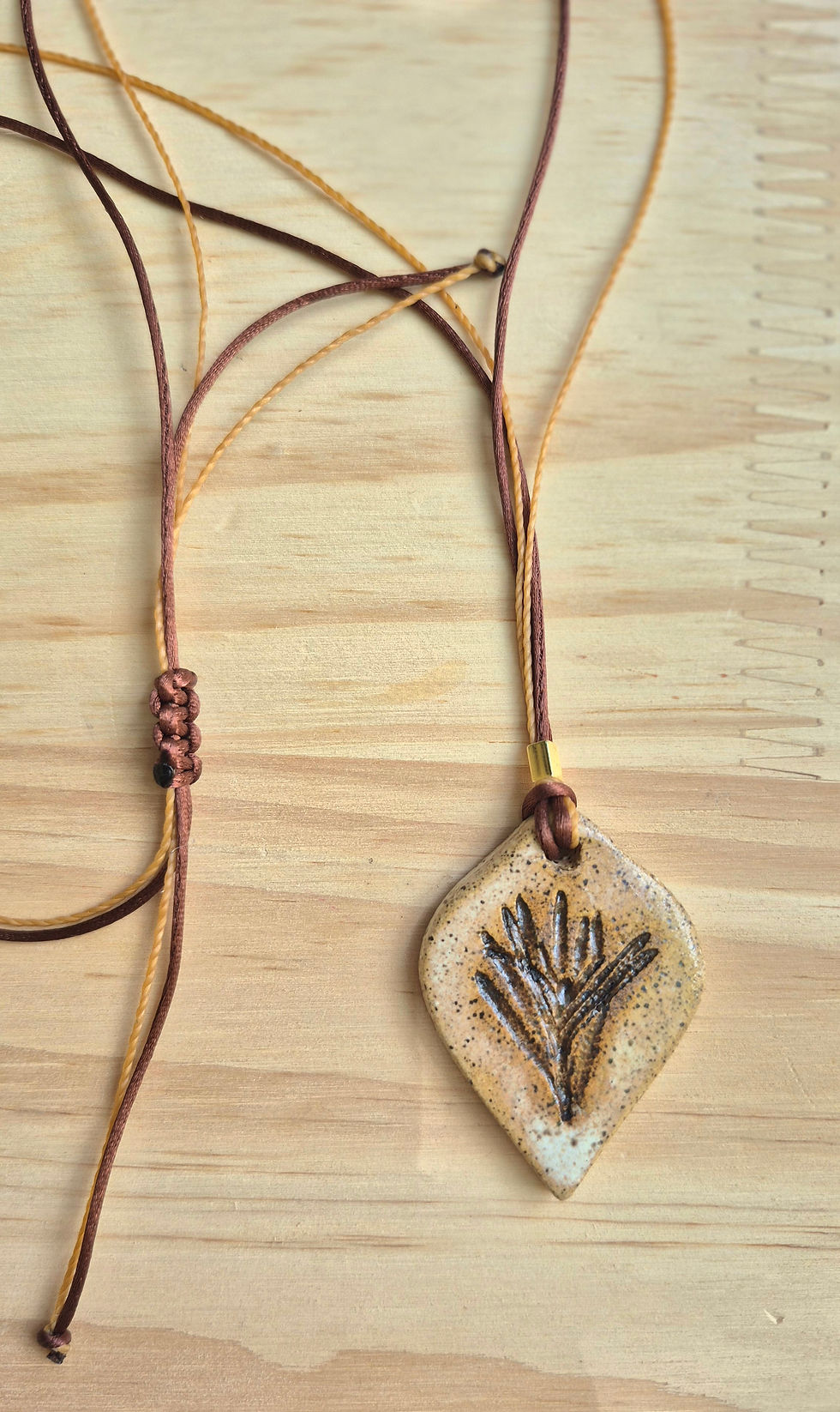 Colar com Folha confeccionada em Cerâmica de Alta Temperatura